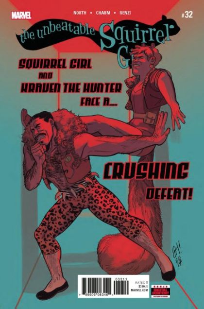 • Doreen Green (A.K.A. the super hero Squirrel Girl) and her friend Nancy Whitehead (an unrelated civilian) have had a great idea: Let's get some friends together and play an escape room! Escape rooms are those real-life games where you get locked in a room and have an hour to escape before you die! • In the game, I mean. It's not like if you die in the game you die in real life! Hah hah. • They gather KOI BOI, CHIPMUNK HUNK, BRAIN DRAIN and, as a special guest...their good friend KRAVEN THE HUNTER. • BUT WHEN THEY ENTER THE ROOM IT TURNS OUT THAT IF YOU DIE IN THE GAME YOU DIE IN REAL LIFE!! TWIST!! • It's everything you crave: friendship, adventure and a room full of death traps that you can only find in SQUIRREL GIRL! Rated T