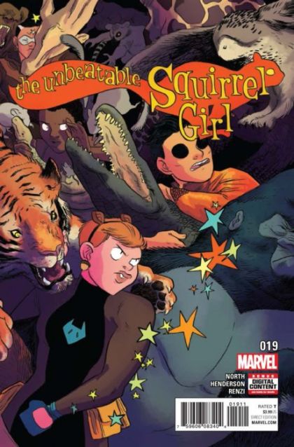 • Worst-mentor-ever Melissa Morbeck has trapped Squirrel Girl in her house, surrounded by zoo animals under her control, and laid out her demands: She wants to have...A CHAT. • Does that not sound exciting enough? What if we were to tell you that this chat ALSO involves punching, shocking revelations, a little bit of cool computer stuff and MACHINE-GUN-WIELDING BEARS, who are as extremely cute as they are extremely deadly?? • Squirrels AND machine-gun bears, all in the same comic?! That's right. Only SQUIRREL GIRL gives you what you want, assuming you have those two very particular interests!! • Hopefully you do; we've got a lot riding on this. Rated T