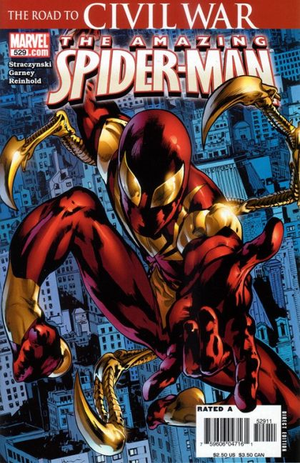 Peter and Tony pay a visit to the lab, where Peter gets his new armour, and readers get an amusing if hand-wavy explanation to clear up a continuity glitch from "The Other." Peter then takes the new armour for a spin, effectively and rapidly rescuing the hostage and delivering her captors to the police. Once complete, he debriefs with Mary Jane and Tony, and learns that Tony wants to hire him on as an assistant full time, and come with him to Washington to deal with the SRA.