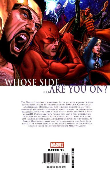 The pieces are moving into place for a final confrontation. Hank Pym oversees the creation of new super teams for the 50 State Initiative, the Punisher breaks into the Baxter Building to get the plans to 42, and Sue Storm heads up a recruitment drive looking for support. The unregistered heroes converge on 42, only to be met by Tony's team, who have had a mole on Cap's side for over a week.