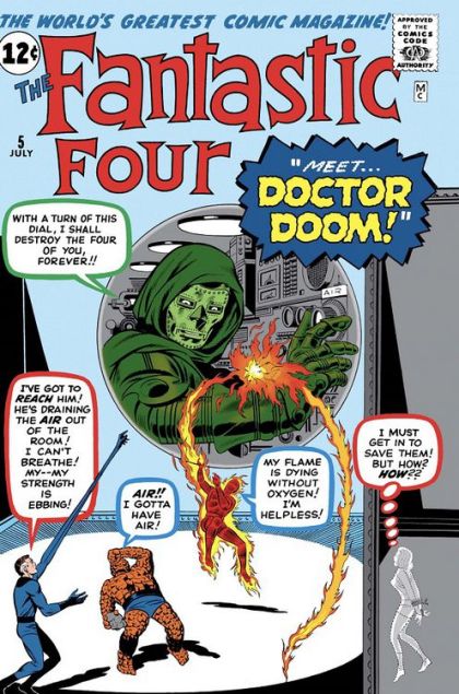 Doctor Doom appears at the skyscraper which is home to the Fantastic Four, and quickly surrounds the entire building in a net. He threatens to destroy them if they don't come with him willingly, and Reed advises them to play along, recognizing Doom's voice as an old college roommate, brilliant in science but interested in magic. The four go to Doom's castle, where Doom sends Reed, Ben and Johnny into the past to recover Blackbeard's treasure chest, while still holding Sue as hostage to ensure their cooperation. The three do go back to the past, disguising the Thing to avoid terrifying the locals. They eventually join a pirate crew and easily rout an attacking ship, only to have the pirates declare the disguised Thing their leader, naming him Blackbeard. Emptying the chest of its treasure and refilling it with chains, they prepare to return to the present. Doom brings them back, revealing that the gems once belonged to Merlin, and that they would grant invincibility to whomever owned them. Disappointed by the contents of the chest, Doom tries to kill the trio, but Sue turns invisible and helps them escape. Doom flees by jetpack while his castle burns, and the four are unable to follow.