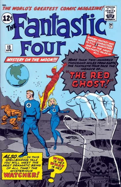 In an attempt to beat "the Reds" to the moon, the Four take off in a new rocket Reed has designed. They are unaware of a Russian effort, too, made by a scientist who brings three apes along in his unshielded vessel, with the intention to expose them all to greater doses of cosmic rays than the FF originally faced. He succeeds in giving his crew superpowers, which they then use to attack the FF on the moon. A mysterious alien known as the Watcher intervenes, placing them all on a level playing field.