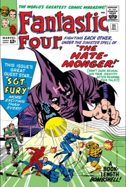 The team investigate the Hate-Monger, a man who is rousing up hatred and violence the likes of which hasn't been seen since World War II. They are struck by his hate ray, and are filled with such hatred for each other that they fight and break up. Reed heads back to the Baxter Building, where he finds security guards getting roughed up by his old war buddy Nick Fury, now a Colonel in the C.I.A. Fury realizes that Reed has been exposed to the hate ray, but still sends him to South America to deal with a civil war. Tricking the other affected teammates to come down with him, Fury sets the stage to get all of the FF where they need to be. Is even Fury good enough to cure them of the hate ray so they can deal with the real threat?