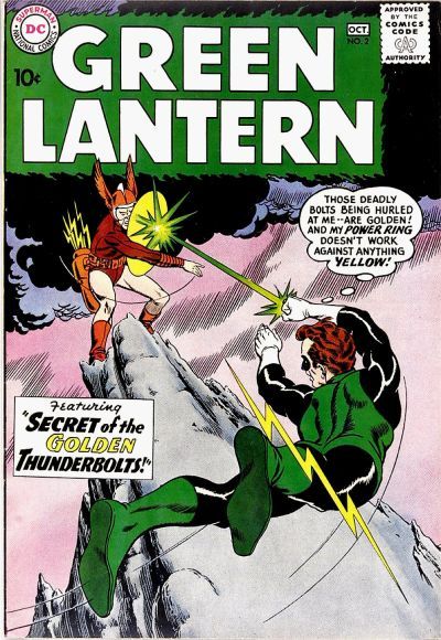 "The Secret of the Golden Thunderbolts" - Hal Jordan is approached by a man seeking the help of Green Lantern. The man is from the parallel universe of Qward, where evil is prized over good, and he came to Earth as a refugee. Hal must try to protect Telle-Teg and his Qwardian friends from the Qwardian Weaponers that have also made the transition from one world to another.