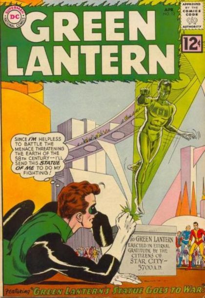 "Green Lantern's Statue Goes To War" - Green Lantern is once again carried to the far future, where he serves as solar director, so that he may quell an uprising. He deduces who is really behind the troubles, but that doesn't mean he will be able to approach the villain for a confrontation.