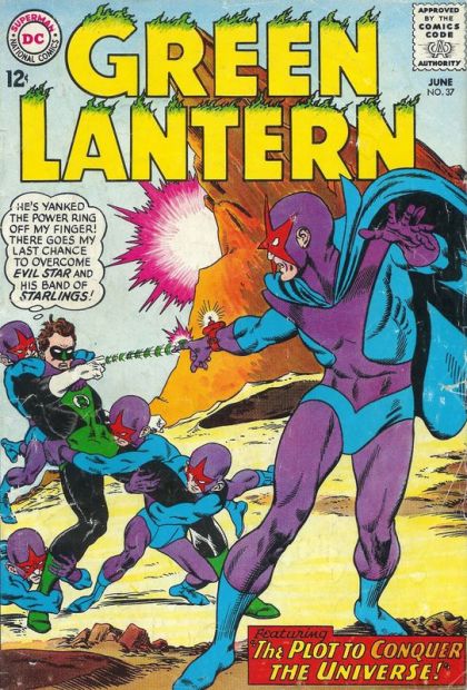 "The Plot To Conquer the Universe!" - Hal is on his way to Oa when he is captured by Evil Star. Evil Star and his minions overpower Hal, and leave him trapped inside a bell jar while Evil Star takes his place on Oa before the Guardians.