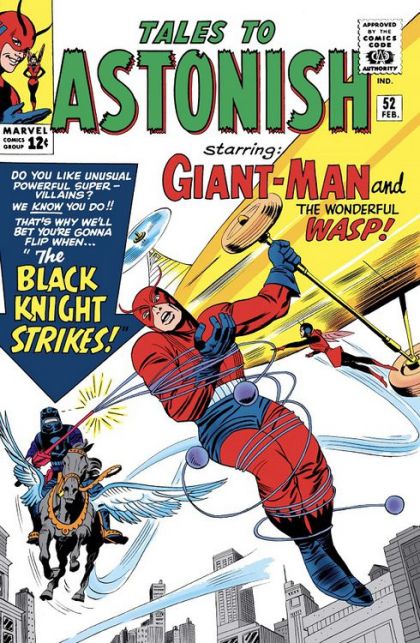 "The Black Knight Strikes!" - A scientist who sold secrets to the communists is captured by Giant Man, skips bail, and starts seeking revenge. He develops a flying horse (by injecting a regular horse with "just the right amount" of eagle blood) and builds a lance loaded with weapons. Giant Man and the Wasp show up to deal with him, but they are not completely prepared for what they are facing.