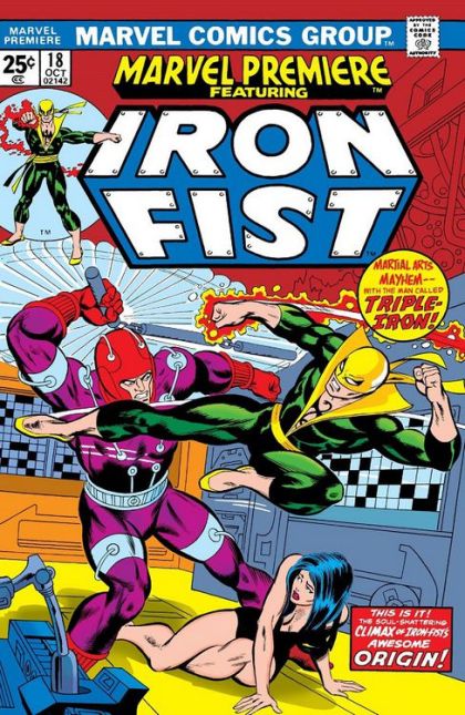 Iron Fist stars in "Lair of Shattered Vengeance!" Script by Doug Moench, pencils by Larry Hama, inks by Dick Giordano. Letter to the editor from Kim Thompson (Comics Journal). The letters page also contains Marvel Value Stamp series A # 74 (the Stranger by Gil Kane). Kane cover pencils. Cover price $0.25.