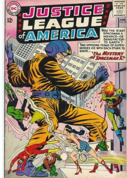 While some members of the League attempt to solve problems on three planets, a giant robotic spaceman arrives on Earth and begins doing good deeds. Superman discovers that the robot is being controlled by a being who was having the spaceman absorb "disaster radiation" from the calamaties it prevented; when it had enough, the controller would absorb it and become invincible. Superman battles the creature and hurls it into space. The giant spaceman is placed in the League's trophy room.