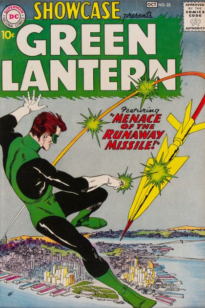 Menace of the Runaway Missile - Hal is making no headway in forming a personal relationship with Carol Ferris. Rather than spending the evening with Hal, she's going to a celebrity ball, and Green Lantern is invited. Hal starts making progress via his alter ego when he spots a missile heading to ground. Unfortunately, the missile is yellow, which is troublesome for the power rings.
