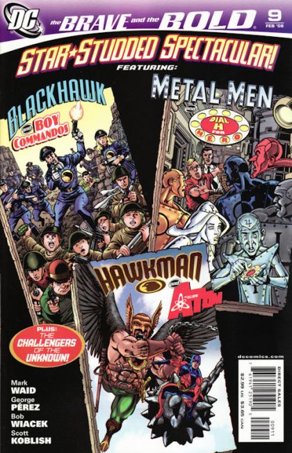 Several pages of the Book of Destiny have come undone from their binding, and formed a humanoid entity. June is captured by it, and finds herself observing the events depicted in those pages. The first was a team-up between the Metal Men and Robby Reed (of "Dial H For Hero.") They join forces and eventually defeat a giant robot whose only spoken word is "Megistus." The second is a team-up between the Blackhawk sqadron and the Boy Commandos, who are trying to prevent the Nazis from obtaining the Orb of Ra. They do this, but then a mummy captures Brooklyn of the Boy Commandos, with plans to use him to demonstrate to Megistus the power of the orb. He escapes, sealing the temple in the process. The third story June views depicts Hawkman and the new Atom fighting against the Warlock of Ys, who also seems to have some knowledge of or contact with Megistus. After realizing that most of the troubles the heroes are having with their equipment is simply feedback and not the Warlock's doing, the new Atom creates more extreme feedback, sending the Warlock through a page shaped portal, which brings the story right back to June, who is now viewing the Book of Destiny's depiction of her current difficulties.
