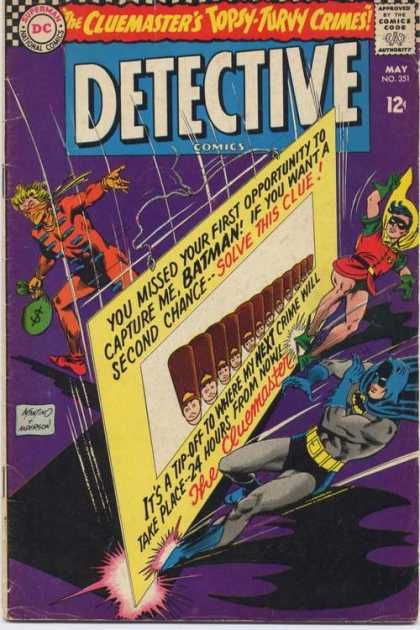The Cluemaster's Topsy-Turvy Crimes! - The Cluemaster is a new crook on the scene, with some remarkably challenging puzzles for the dynamic duo. Even worse, Aunt Harriet has reason to be suspicious of their secret identities.