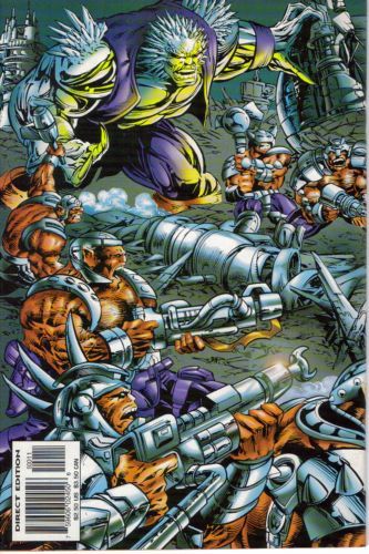 Doubld-sized, hammer-hurlin', skull-crackin' anniversary issue! Trolls and Frost Giants have turned Asgard into a warzone, and Thor and the Enchantress are on opposite armies! Now the fate of the golden realm can only be decided by - a spelling bee? Not! It's a 48-page, bone-breakin' Braveheart-type brawl, and Thor's going to smack the kilt off of anyone who meets him on the blood-splattered battlefield!