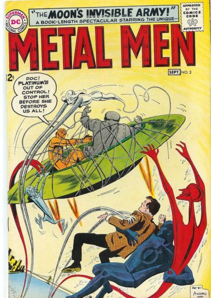 After a failed attempt to build a new Platinum, Dr. Magnus and the Metal Men go to the Moon to recover what's left of the original. They accidentally bring back a dangerous threat, too, and another member of the team sacrifices himself to save the Earth.