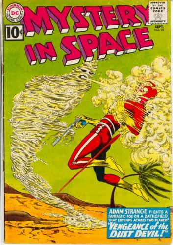 "Vengeance of the Dust Devil" - Adam Strange has had a passenger for a while without his knowledge. One of the dust devils he defeated a short time ago hid in his holster, and learned how to overcome his sand attack. Now, for revenge, it plans to destroy both Earth and Rann.