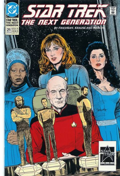 Part 2 of 5. The crew of the Enterprise mourns its missing members, whom they believe are dead. If things don't improve soon, Riker will die - trapped in the shuttle that's lost in space. Written by Michael Jan Friedman, with art by Peter Krause and Pablo Marcos. Cover by Jerome Moore. New Format. Cover price $1.75.