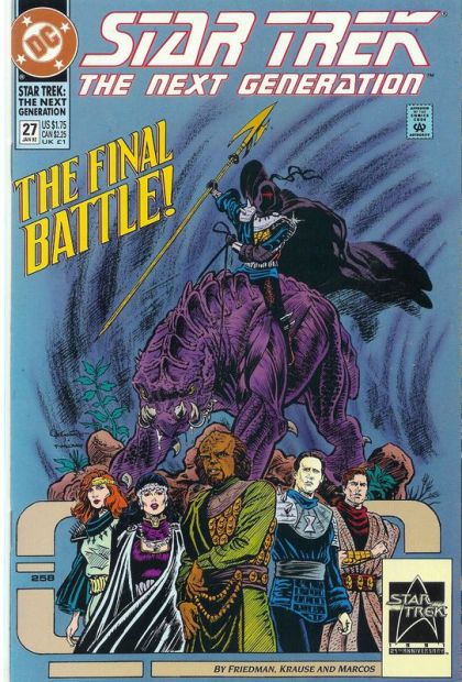 Part 3 of 3. Trapped on a bizarre world, Worf, Data, Troi and Okona find their lives in constant danger from mysterious death traps and the shield separating the Away Team from the Enterprise. Written by Michael Jan Friedman, with art by Peter Krause and Pablo Marcos. Cover by Jerome Moore. New Format. Cover price $1.75.