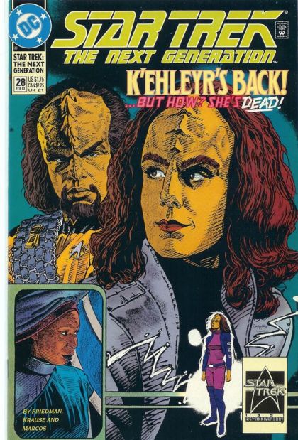On the anniversary of the death of his mate, Worf is drawn into an alien scheme that would return her to life...but at the cost of the Enterprise and its crew. Written by Michael Jan Friedman, with art by Peter Krause and Pablo Marcos. Cover by Jerome Moore. New Format. Cover price $1.75.