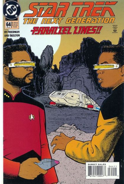 Part 2 of 3. Crash-landed on a remote planet, an Enterprise runabout with Lieutenant Commander Geordi La Forge aboard encounters a second runabout...manned by the Commander La Forge of a parallel universe. Meanwhile, on the Enterprise, Picard learns that his Romulan 'guest' is wanted by the Cardassian Union, the Ferengi Alliance...and the Romulan Empire! Written by Michael Jan Friedman, with art by Deryl Skelton. Cover by Jason Palmer. New Format. Cover price $1.95.