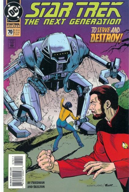 Part 4 of 4. Commander Riker finds that keeping an old promise has inadvertently led to murder and the creation of a machine that may destroy the very civilization Riker believed he was preserving. Written by Michael Jan Friedman, with art by Deryl Skelton. Cover by Peter Krause and Terry Pallot. New Format. Cover price $1.95.
