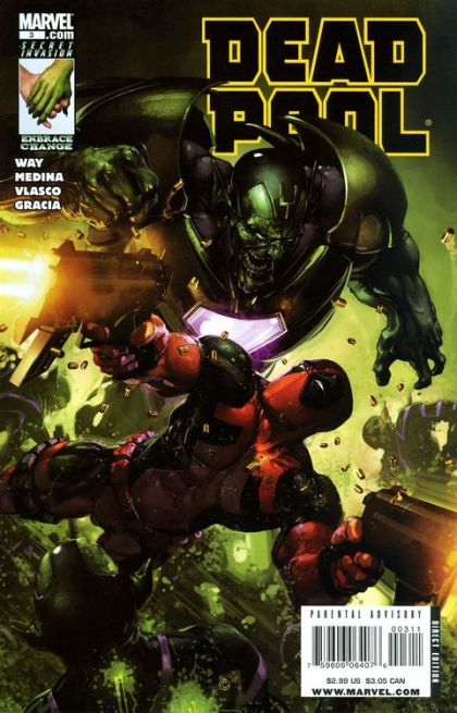 Deadpool's dastardly plan is coming to fruition. All he needs to do to succeed is kill a superskrull, survive an encounter with several Skrull clones based on his own abilities, deal with the Skrull scientist who created them, finish his mission for Nick Fury, and then get off the Skrull war vessel. Piece of cake, right?