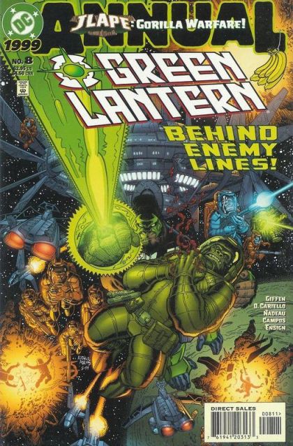 Kyle has been transformed into an ape, and recruited to help fight the sapiens of Earth. It'll take some major intervention from the rest of the JLA to remind him of who he is and what he should be doing.