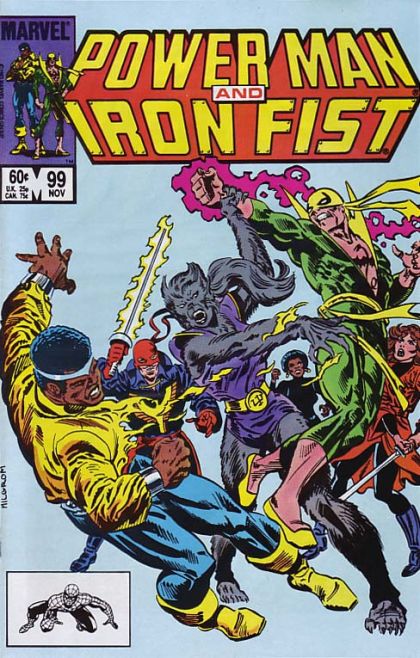 Shades' blast has hurled the Heroes from the George Washington Bridge! They twist so Luke takes the brunt of it, knocking him out! With Herculean effort, Danny recovers him and gets him breathing again, but it's a near thing! Investigating Rand-Meachum, the ladies of Nightwing discover Danny's stolen gem. Preparing to sneak away, they spot El Aguila and come to his rescue. It seems Rand-Meachum has been hiring criminals and the Eagle would like to know why! The three defeat the rabble when Fera appears! She seizes Misty, forcing Colleen and Aguila to retreat. Luke and Danny return home, bruised and battered, and discover D. W. is missing and his films have been stolen. Lt. Scarfe also tells them someone sprung Shades and Comanche! Elsewhere, those villains realize they did not steal the correct film, and a disgusted Fera retrieves to complete their task. Colleen and El Aguila arrive with news of their encounter. Then Fera appears. Fast as lightning, she nearly overwhelms all of them, but they manage to drive her into a rage that corrodes her skills, until she finally flees! But the heroes realize the film is important. Retrieving it from the dryer where the thieves missed it, they soon learn Ward Meachum is at the root of their difficulties, and vow to make him pay. But at Rand-Meachum, men place the Power Gem in a socket and a figure coalesces from mist. Master Khan has come to handle things personally!