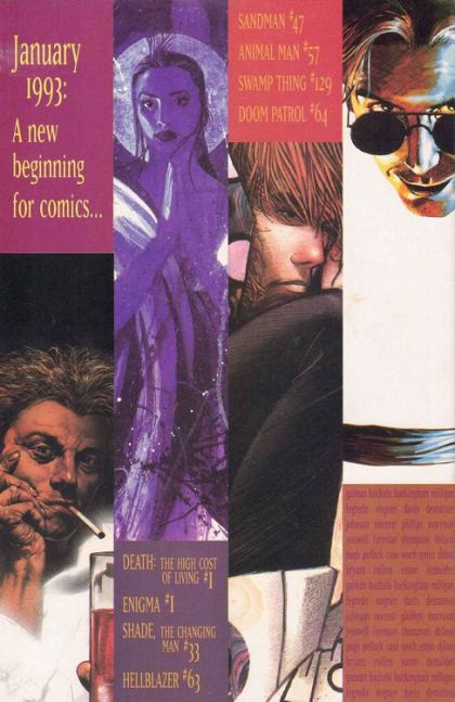 | Writer | J.M. DeMatteis, Dick Foreman, Ann Nocenti, Neil Gaiman, Nancy A. Collins, Rachel Pollack, Grant Morrison, Garth Ennis, Jamie Delano, Peter Milligan, Matt Wagner |