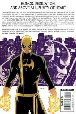 Written by MATT FRACTION, ROY THOMAS & LEN WEIN Pencilled by KANO, GIL KANE & LARRY HAMA Cover by GIL KANE Honor. Dedication. And above all, purity of heart. There have been sixty-six men and women to carry the mantle of The Immortal Iron Fist throughout the ages - men and women of great courage, valor, skill, and sacrifice. Sixty-six men and women have stood between man and the unstoppable forces of evil, willing to give all they have to hold back the hordes. This is the story of Danny Rand, the Iron Fist of today - as told in THE BOOK OF THE IRON FIST. Raised in the otherworldly kingdom of K'un-Lun as an unparalleled martial artist, the Earth-born Rand mastered the ability to focus his spiritual energy into an impervious fist of iron. Now, as the costumed adventurer called Iron Fist, he fights with the fury of his ancestors and a hope for a better tomorrow! Experience the birth of a legend like never before in this special re-presentation of MARVEL PREMIERE #15-16 - featuring lush, fully-rendered coloring and an all-new framing sequence by Matt Fraction and Kano!