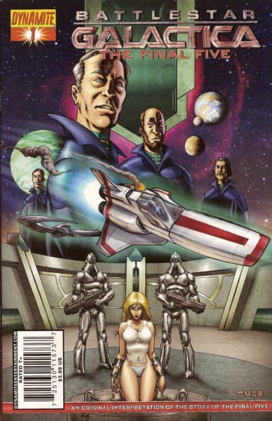 by Seamus Fahey, David Reed & Nigel Raynor While the critically acclaimed series may be coming to an end, Dynamite Entertainment enters 2009 with a series of new and exciting Battlestar Galactica comic book events! Beginning with THE FINAL FIVE, a three issue event tying directly into the events of the final episodes of the series, Dynamite will continue to provide a home for great Galactica stories in 2009 and beyond! The term 'Final Five' collectively describes five of the twelve Cylon humanoid models whose identity, knowledge, or existence has been deliberately or accidentally lost to the seven other humanoid Cylon models. -- Battlestar Wikipedia THE FINAL FIVE #1 (of 4) is overseen By Seamus Kevin (ORIGINS) Fahey and David Reed with the complete authorization of Sci Fi and the producers and features the back story of the Cylons, man and their current struggle against one another! Joining the writers is Galactica veteran Nigel Raynor, who also provide one of the two incredible covers! And to top it all off, RED SONJA/SUPER-ZOMBIES artist Mel Rubi is also providing an incredible cover!