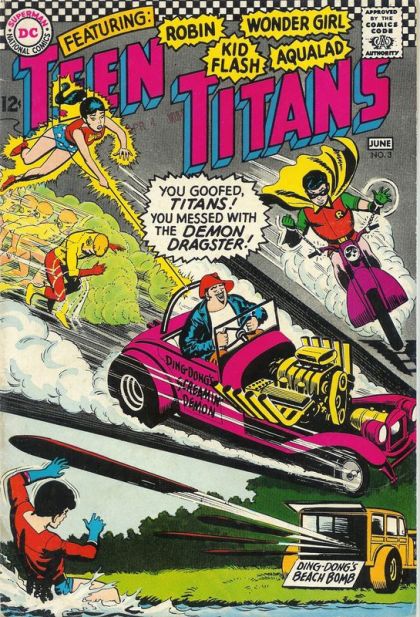 The President’s Commission on Education asks the Teen Titans to help deal with the problem of High School dropouts. In the town of Harrison, the young heroes discover dropouts being hired by Ding-Dong Daddy Dowd, proprietor of a custom hot-rod and bike shop. Uncovering evidence that Dowd’s operation is a front for criminals, the Titans go undercover as would-be drop-outs and expose his schemes, thus persuading his teenage employees to return to school.