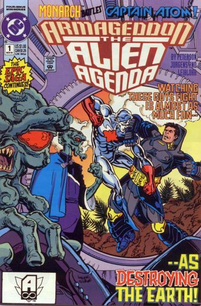 Monarch and Captain Atom have been blasted into the past during the course of their battle. They manage to find each other amidst the dinosaurs of the era, and soon have their continuing battle interrupted by the arrival of an alien vessel.