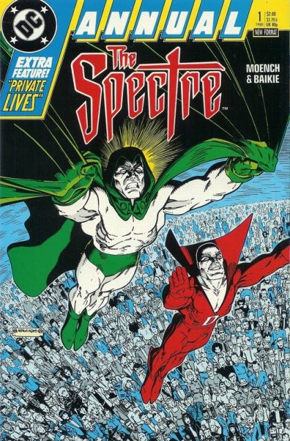 Cover by Arthur Adams. "Ghost, dead man, devil child…." 40 pages. Story by Doug Moench. Art by Jim Baikie. A "proto-demon", sent to Earth to dispel any hope gained by humanity after the Millennium crossover event, come into conflict with the Spectre and Deadman. The entity is so powerful, the heroes may have to resort to using the demons own weapons against him. "Fruitful multiplication." 8 pages. Story by Doug Moench. Pencils by Gordon Purcell. Inks by Doug Hazelwood. Kimmie is just trying to clean Jims office. A task made much more difficult by a squad of tiny lesser demons. 48 pages. Full color. Cover price $2.00.
