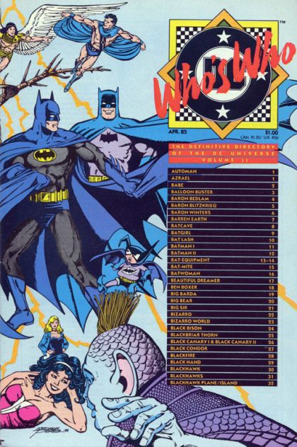 A reference index providing biographies for characters alphabetically. This issue covers Automan through Blackhawk Plane/Island.