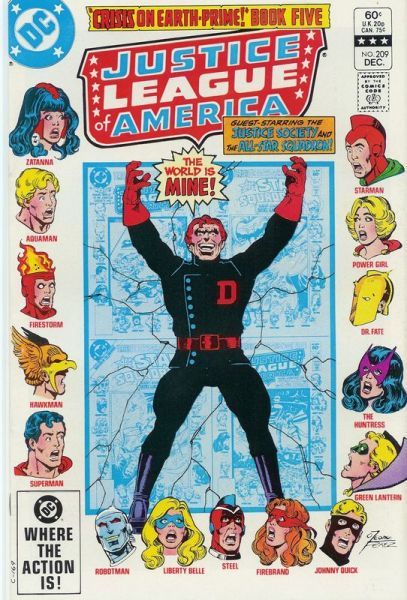 The teams who discovered some of Degaton's atomic missiles (see part 4 of Crisis On Earth Prime) report back to Earth-Two's President Roosevelt on their successes but there are still more missiles to find. One team, including Power Girl, travel to Switzerland where they encounter Degaton's minions and Johnny Quick of Earth-Three. During the fight, Degaton's soldiers launch the missiles, forcing the heroes to dispose of them quickly and safely. Another team visit Prof Zee - Degaton's employer and inventor of the time machine. They convince him to allow them to use the machine to travel forward in time to 1962 and across dimensions to Earth-Prime in order to prevent Degaton stealing the missiles in the first place. In 1942, the heroes discover Degaton's hideout and, after battling his soldiers and Owlman of Earth-Three, defeat him. On Earth-Prime, as the Crime Syndicate - under Degaton's orders - attempt to steal the missiles, they are prevented by the heroes. With that crime never having taken place, the rest of the adventure could not have happened and history rewrites itself with the Justice League, Justice Society and All Star Squadron having no recollection of it at all.
