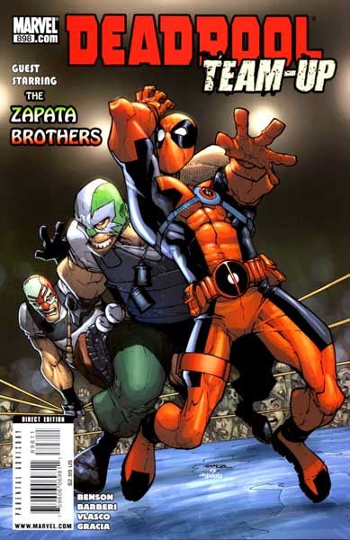 Written by MIKE BENSON Penciled by CARLO BARBERI Cover by HUMBERTO RAMOS 'BRING ME THE HEAD OF MICKEY DOBBS'-Everyone's favorite Merc with a Mouth hacks and wisecracks his way across the Marvel Universe in this third ongoing series featuring a new guest-star every month! This month: the Zapata Brothers, brought to you by the creative team behind DEADPOOL: SUICIDE KINGS, Mike Benson and Carlo Barberi! What happens when you take the Regenerating Degenerate, a couple of Mexican wrestler bounty hunters, the South American drug cartel, and a one-million dollar bounty on the head of a guy who's already dead? You get a ride into the bowels of a Texas border town, where everyone is out for themselves?and nothing is as it seems. 32 PGS./Parental Advisory ?$2.99