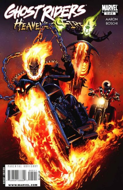 Written by JASON AARON Penciled by ROLAND BOSCHI Cover by GREG LAND The battle against Zadkiel, usurper of heaven, nears its conclusion as the all-new Orb and all-new Vengeance enter the fray, leading an army of zombie bikers against an army of Gun Nuns, with Johnny Blaze and Danny Ketch caught in the middle. Plus, Jaine Cutter versus the Son of Satan and the junior Anti-Christ, Kid Blackheart, makes his move. 32 PGS./Parental Advisory ?$3.99