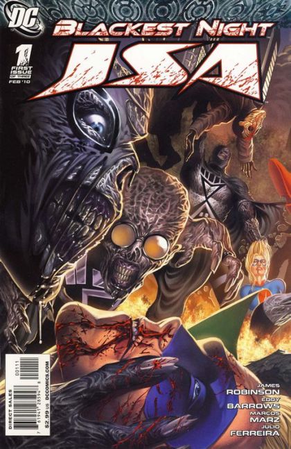 Written by James Robinson Art by Eddy Barrows & Ruy Jos? Cover by Eddy Barrows Variant cover by Gene Ha The mystery men of yesterday are back and they seek the hearts of their new counterparts! It's Mr. Terrific vs. Mr. Terrific, Dr. Midnite vs. Dr. Midnite, Sand vs Wesley Dodds! Can the new generation of heroes survive the rise of the Black Lantern JSA? Find out in this all-new miniseries from original JSA co-writer James Robinson and rising star artist Eddy Barrows (BLACKEST NIGHT: SUPERMAN)! Retailers please note: This issue will ship with two covers. For every 25 copies of the Standard Edition (with a cover by Eddy Barrows), retailers may order one copy of the Variant Edition (with a cover by Gene Ha). Please see the Previews Order Form for more information. On sale December 23 o 1 of 3 o 32 pg, FC, $2.99 US