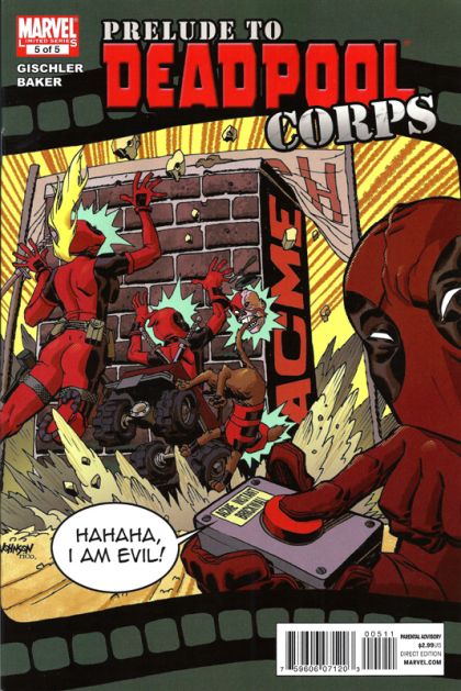 Written by VICTOR GISCHLER Penciled by KYLE BAKER Cover by DAVE JOHNSON Witness the birth of the most important super hero team ever in a universe-spanning event that will rock the month of March! Wade Wilson has been tapped to save the Universe, and to do that he's going to need help. Enter: The sexy-but-insecure Lady Deadpool! The devious-but-lovable Headpool (a.k.a. the Zombie Deadpool Head)! The bratty-but-brilliant Kidpool! And the irascible mutt known as Dogpool! Individually, they're, well, kind of messed up, but together, they're the unstoppable force know as DPC. Issue #1 40 PGS./Parental Advisory ?$3.99 Issue #2-#5 32 PGS./Parental Advisory ?$2.99