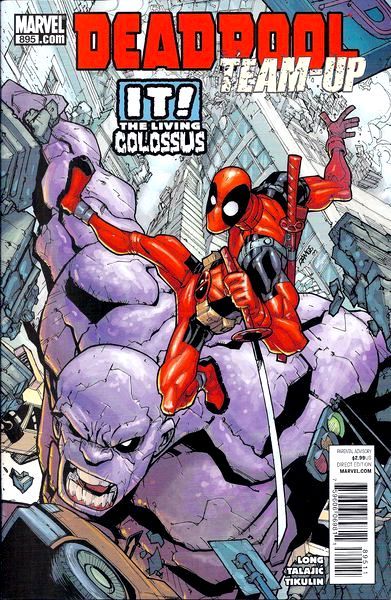 Written by CHRISTOPHER LONG Penciled by DALIBOR TALAJIC Cover by HUMBERTO RAMOS 'HARD AS ROCK'-Off the coast of the Gal?pagos Islands, something hideous, something so deliciously amoral has vanquished the tranquility and shattered the peace - DEADPOOL! The legend no one can forget has been missing for years?yes, we're talking about It! The Living Colossus, the 30-foot-tall stone statue brought to life by wheelchair-bound Robert 'Bob' O'Bryan. Enlisted by O'Bryan's niece, Deadpool takes a dive, plunging down to the ocean floor in search of the stone statue. But something more heinous than Deadpool's thoughts when he's watching lingerie football lurks in the ocean depths. And underwater, nobody can hear your hilarious one-liners! 32 PGS./Parental Advisory ?$2.99