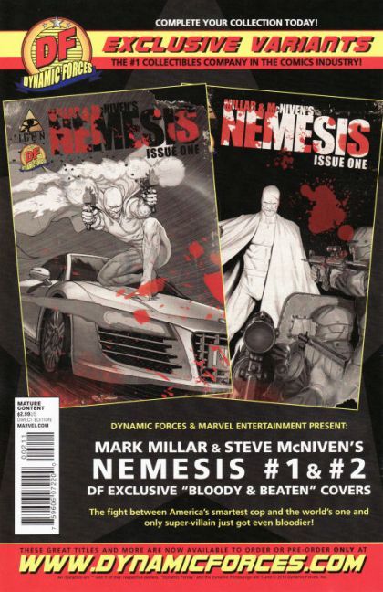 Written by MARK MILLAR Pencils & Cover by STEVE MCNIVEN The most talked about new series of 2010 rages on! Nemesis's tour of terror hits Washington D.C. and hits it hard. That doesn't bode well for the citizens of the nation's capital or the man in the house on Pennsylvania Ave. Luckily, the Chief of Police has an idea on how to stop the super-villain-- but can you stop a one man hurricane of violence and mayhem? All this, thanks to the creative team that brought you CIVIL WAR- Mark Millar and Steve McNiven. 32 PGS./Mature Content ?$2.99