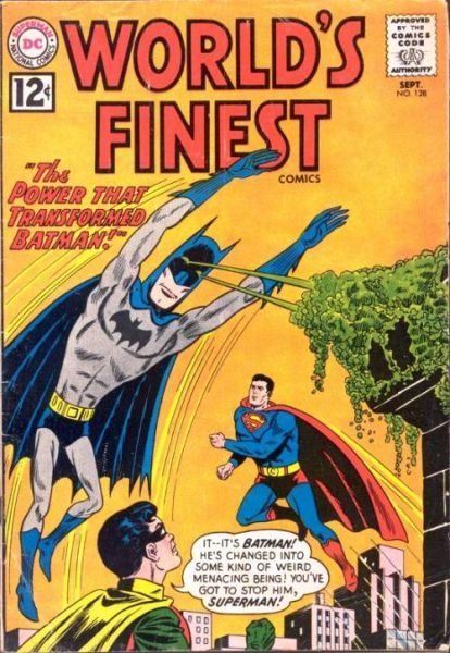 The Power That Transformed Batman - Batman somehow transforms in a variety of ways, forcing Superman and Robin to ignore criminals and focus instead on their newly destructive friend.