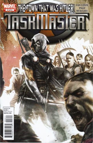 Taskmaster has discovered a town full of Hitlers, and is working his way through to the top. While he finally realized there is something off about the waitress who has joined him, Nick Fury fills in Steve Rogers on Taskmaster's history.