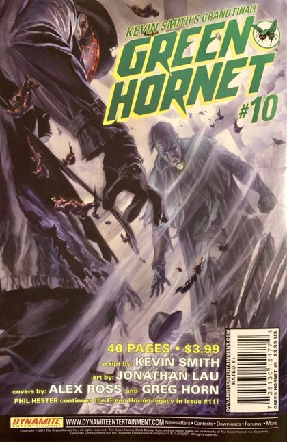 (W) Kevin Smith (A) Jonathan Lau (C) Alex Ross (50%), Greg Horn (50%) & Joe Benitez (1-in-10) Green Hornet and Kato's confrontation with The Black Hornet has left them in an unimaginable death trap of epic proportions. Only Kato's drastic, dangerous gambit can save them. Even if it does, The Black Hornet's insidious plans for Century City spell doom for our heroes. Only their self sacrifice can prevent the utter destruction of their beloved city. Will the new Green Hornet's first mission also be his last?