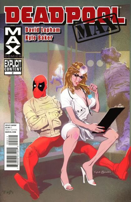 Written by DAVE LAPHAM Pencils & Cover by KYLE BAKER 'AS INEZ DOES (A LOVE STORY)'-Almost as famous as Deadpool's capacity to kill is his capacity for love. Yes, underneath all the scar tissue, lies a heart of mush. Enter Dr. Inez, Clinical Psychologist, informing Deadpool of a secret - a secret so big it could destroy the government's top agent's ability to kill and maim: He is 100% certifiable and must be immediately committed! But the Sunshine Rest Home is more than just a place full medicated people - it's a house of horror, and the good Dr. Inez is chest deep in an insidious plot to deprive men of their sanity. Can Deadpool discover these deceptions before therapy and love turn him soft? Can his handler, 'Hydra' Bob, save Deadpool in time for him to save the world from those that kill and need killing? And who are Woodman and Stanley? 32 PGS./Explicit Content