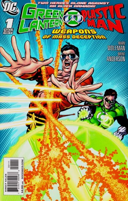 Plastic Man has picked up a lead on criminal activity that is definitely NOT local in origin. He convinces Green Lantern to help him investigate, much to Hal's dismay. However, Hal soon comes to realize that there may be more to Plas than his goofy exterior.