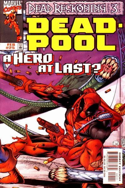 Cover pencils by Walter McDaniel, inks by John Livesay. Dead Reckoning Part 3: What the World Needs Now, script by Joe Kelly, pencils by Walter McDaniel, inks by Whitney McFarland, Rodney Ramos, Walden Wong, Scott Elmer, and Scott Koblish; In the desert sands of Egypt, Deadpool does what even Captain America in a Landau, Luckman and Lake battle suit can't--he accepts his destiny as a hero, steps up to the plate and saves the universe from a cosmic messiah who offers peace at the price of giving up free will and change; Dixon goes nuts in the aftermath and Zoe takes over LL & L as she writes Deadpool off as a loss. 52 pgs. $2.99. Cover price $2.99.