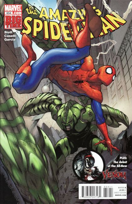 Written by DAN SLOTT Art & Cover by STEFANO CASELLI REVENGE OF THE SPIDER-SLAYER-Part 3 (of 3):'Self-Inflicted Wounds' One of the most pivotal moments of the SPIDER-MAN 'BIG TIME' era happens here. Other comics promise you their issues will 'Change Everything' or that 'Nothing Will Ever Be The Same.' No carnival barker-like pitch this time. Just the plain, simple truth: This issue of AMAZING SPIDER-MAN will have repercussions for Peter Parker and this title's cast for years and years to come. Guest-starring THE NEW AVENGERS. Also in this issue: We finally reveal what has become of the alien symbiote. And a dramatic change to Spider-Man's powers. Do NOT miss this issue! 40 PGS./Rated A
