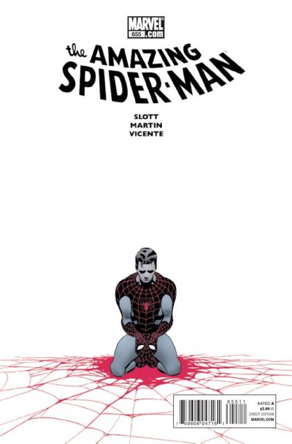Written by DAN SLOTT Art & Cover by MARCOS MARTIN This February may be the shortest month of the year, but this time it's the BIGGEST month for AMAZING SPIDER-MAN! 'Awakening' We can't tell you what's in this issue without spoiling the end of AMAZING SPIDER-MAN #654. But we can say this: Marcos Martin returns to AMAZING SPIDER-MAN in a full-length 30 page story that will haunt you. As the fallout of recent events continues to rock Peter Parker's world, he makes a choice-- a promise-- that even he might not be able to fulfill... 40 PGS./Rated A