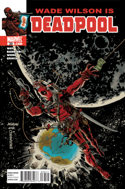 Written by DANIEL WAY Penciled by CARLO BARBERI Cover by DAVE JOHNSON 'SPACE ODDITY,' PART 1-Deadpool, everyone's favorite fun-loving killer-for-hire, is back in business, taking on a new gig - in space! Will this job cement his rep as the best merc in the solar system, or will things like lack of oxygen and zero-gravity throw him off his game? One word: Maybe! 32 PGS./Parental Advisory